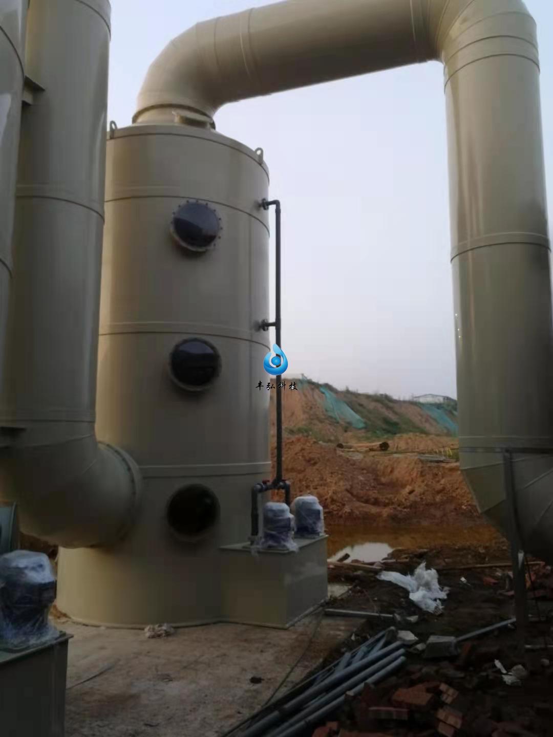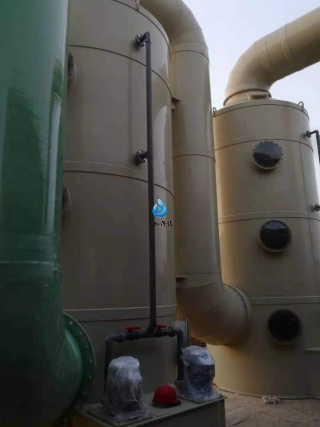 廢氣由加堿液的洗滌塔堿洗后進(jìn)入加植物液的洗滌塔內(nèi),再經(jīng)過一級(jí)噴淋反沖洗,去除部分有害氣體成分并中和廢氣中難聞異味。