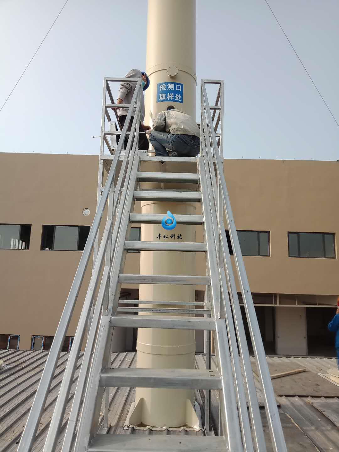 由配藥裝置在洗滌塔內(nèi)加入適量堿液,用耐腐循環(huán)泵將塔內(nèi)稀釋的堿液經(jīng)過一級(jí)噴淋反沖洗,進(jìn)行滅菌處理,中和廢氣中的酸性物質(zhì),使廢水PH值達(dá)到中性。