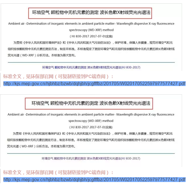 兩項(xiàng)標(biāo)準(zhǔn)分別規(guī)定了測(cè)定環(huán)境空氣和無(wú)組織排放顆粒物中無(wú)機(jī)元素的,能量色散型X射線(xiàn)熒光光譜儀(ED-XRF)、波長(zhǎng)色散型X射線(xiàn)熒光光譜儀(WD-XRF)的分析方法。
