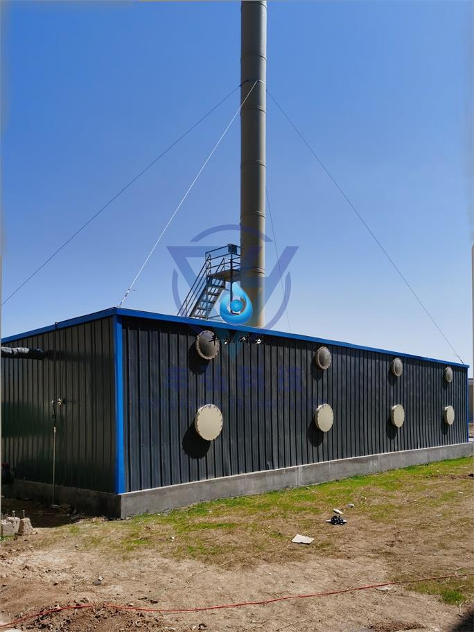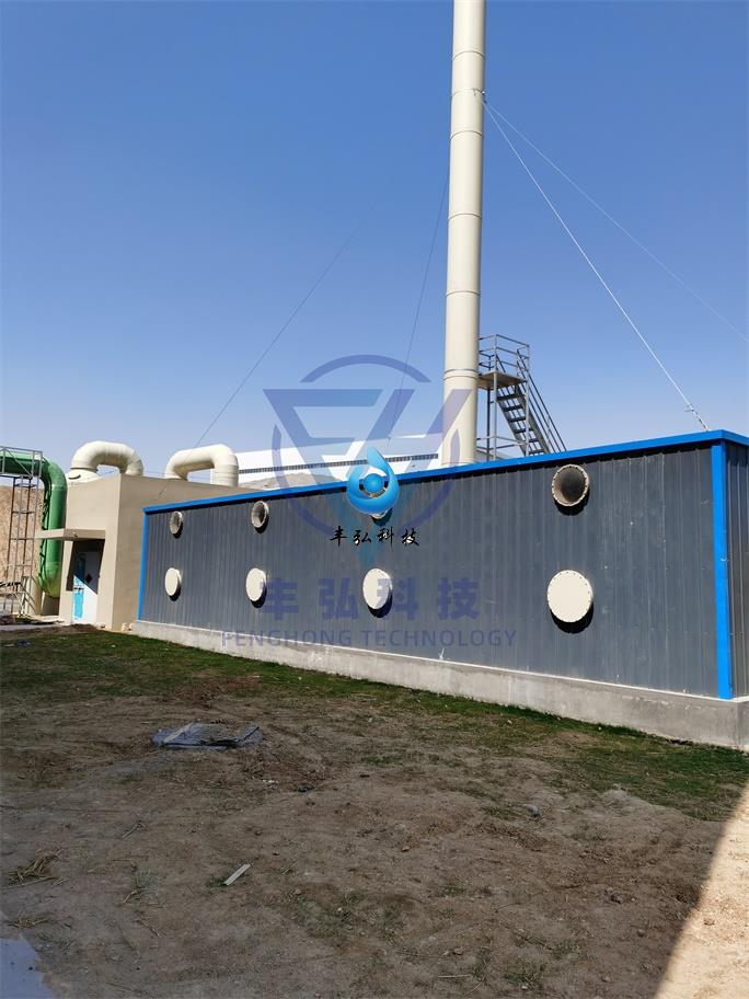 氣體經(jīng)過收集管道進(jìn)入洗滌塔內(nèi),臭氣從洗滌塔的底部送入,填料表面與噴淋液在逆流連續(xù)、充分接觸條件下進(jìn)行傳質(zhì),池內(nèi)填料層作為氣液兩相間接觸的傳質(zhì)介質(zhì),底部裝有填料支撐板,填料以無序方式堆置在支撐板上噴淋液從池頂經(jīng)液體分布噴淋到填料上,并沿填料表面流下。臭氣行水洗噴淋,去除臭氣中的粉塵、NH3以及少量H2S、CH3SH等氣體,氨氣溶于水形成堿性溶液,循環(huán)噴淋可去除臭氣中的H2S,同時(shí)吸收少量有機(jī)臭氣污染物。噴淋洗滌池上設(shè)置了監(jiān)視窗和檢修孔以便于人員進(jìn)行監(jiān)視洗滌塔的工作狀況是否正常以及及時(shí)更換老化的填料。為了避免氣排放夾帶液滴,在凈化裝置頂部設(shè)置氣水分離器。池內(nèi)噴淋液循環(huán)使用,在使用過程中會(huì)有部分損失和消耗,需要定期更換噴淋液。噴淋池也可根據(jù)實(shí)際工況靈活添加或更換化學(xué)吸收劑,但是一定要注意化學(xué)廢水帶來二次污染。